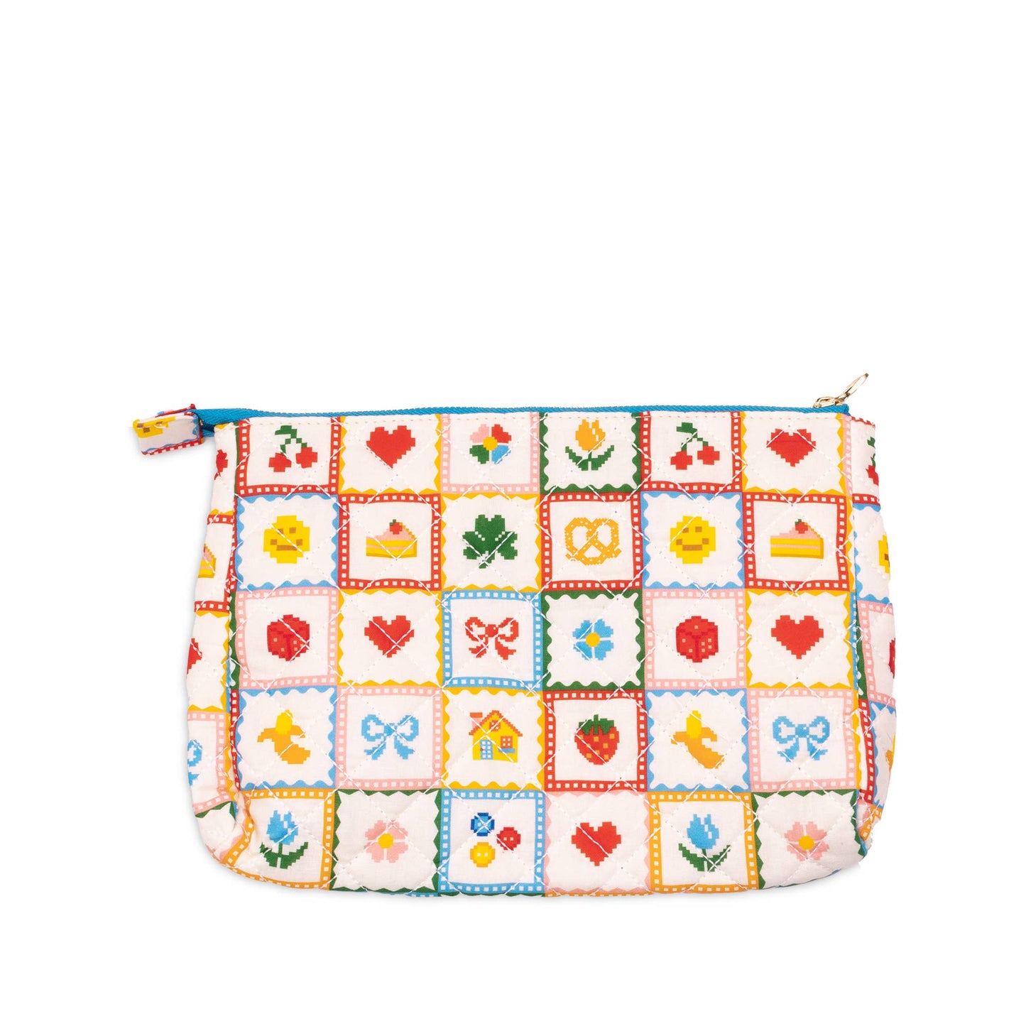 Yes, we’re on a mission to quilt everything. This quilted pouch features a range of cute designs and has a zip closure and interior lining.