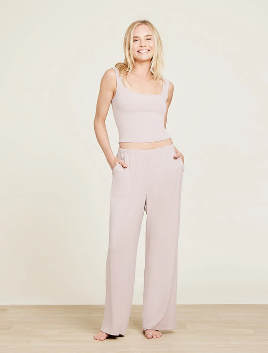From our Barefoot Dreams Malibu Collection®, experience ultimate comfort in our Ultra Soft Rib Patch Pocket Pant. Made with a drapey wide leg design and an elasticated waist, these pants provide a soft lounge feel. With convenient patch pockets, you'll have everything you need within reach. Perfect for a cozy day at home or a casual outing. Complete the set with our Malibu Collection® Ultra Soft Rib Bralette or our Malibu Collection® Ultra Soft Rib Cropped Tank.