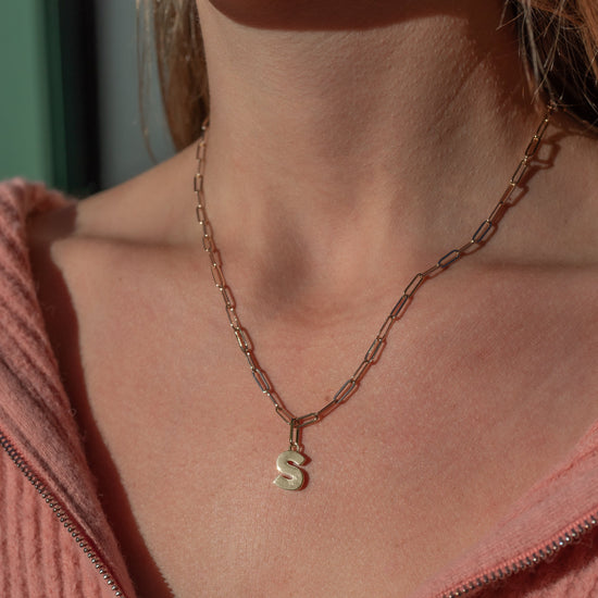 - Charm: 14k gold-plated 12mm initial charm (available from A-Z)