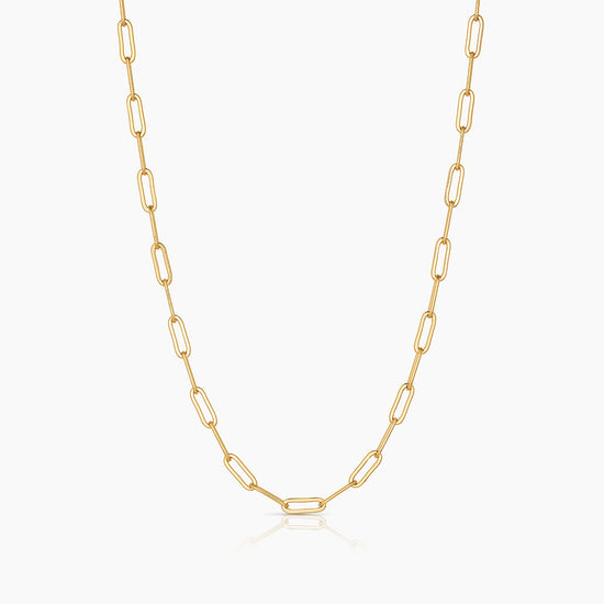 - Material: 14k gold-plated 3.4mm Finn elongated chain