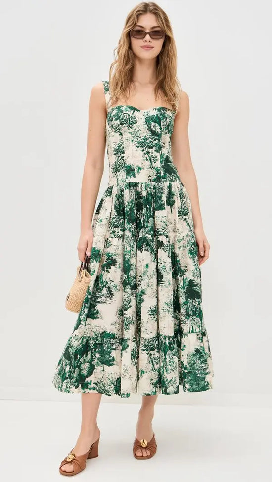 A romantic take on effortless femininity, the Santiago Midi Dress is crafted from mid-weight cotton poplin in a vibrant floral print. Designed with a flattering sweetheart neckline, this midi features underwire cups and boned side seams for a structured yet comfortable fit. Fixed shoulder straps with elastic insets ensure ease of movement, while a hook-and-eye and hidden zip closure at the back provide a seamless finish. On-seam hip pockets add a practical touch to this versatile silhouette.