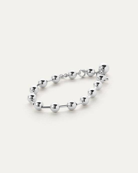 A modern take on a classic beaded bracelet, this luminous design features sleek metal spheres that add effortless shine to your wrist stack. Crafted in high-polish silver-dipped brass, it’s designed with three non-removable extender rings, allowing for an adjustable fit at multiple lengths. A lobster clasp ensures a secure and comfortable wear.