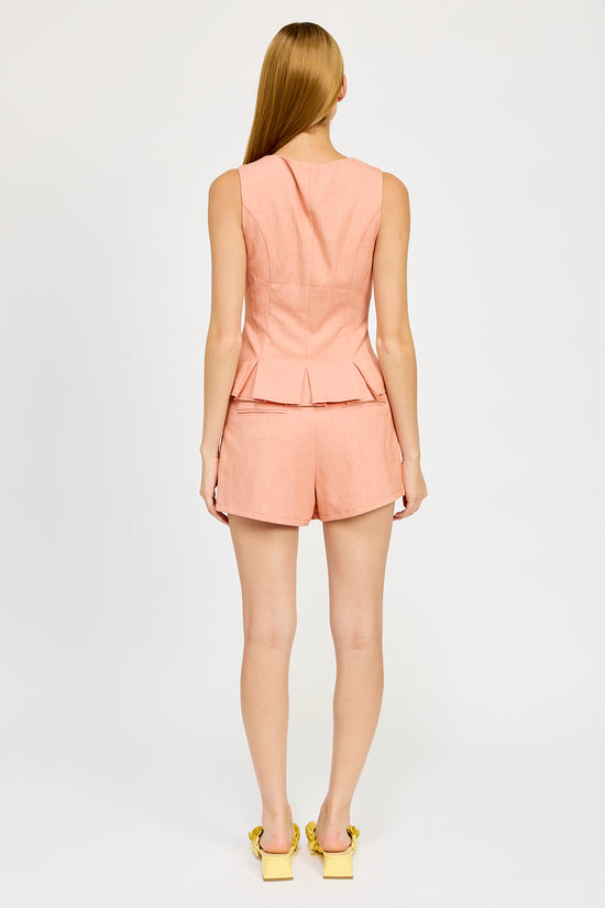 The Amira Top by En Saison is a modern take on feminine tailoring, offering a structured yet effortlessly chic silhouette. Crafted from a breathable blend of 49% polyester, 48% rayon, and 3% spandex, this sleeveless top provides a comfortable yet polished fit.