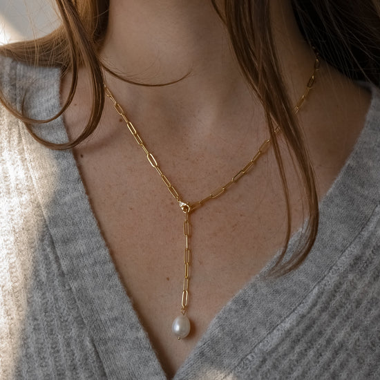 - Material: 14k gold-plated 3.4mm Finn elongated lariat necklace