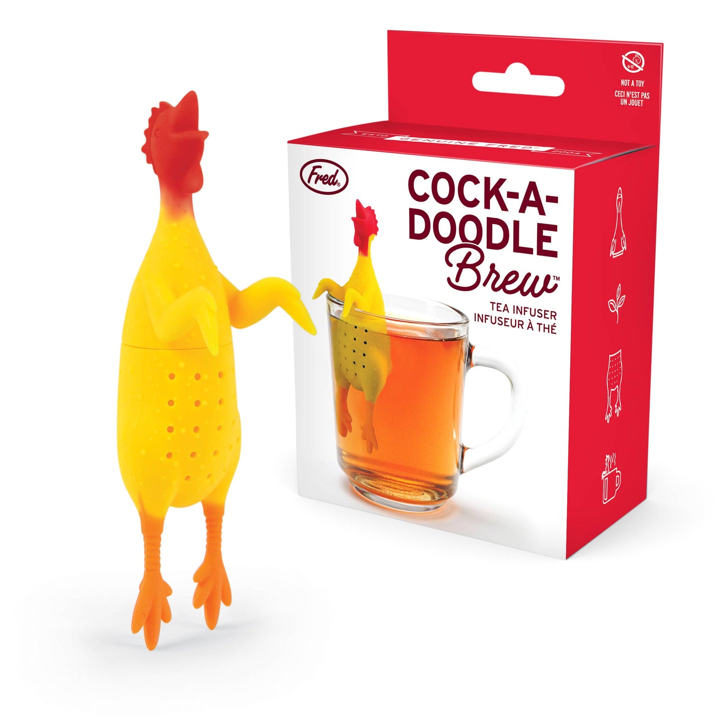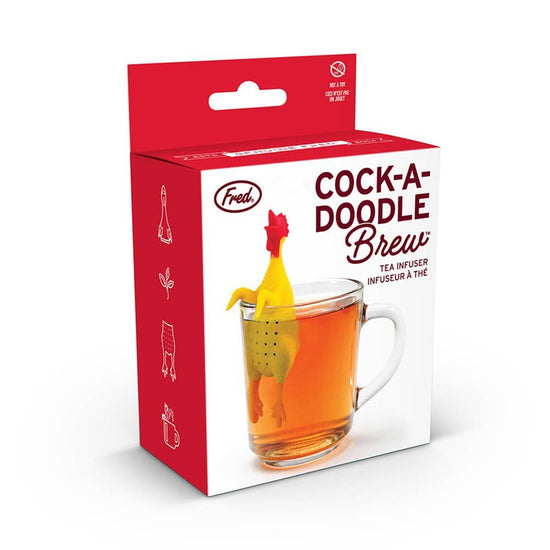 Simply fill Fred's COCK-A-DOODLE BREW with your favorite loose leaf tea and hang it on the rim of your mug to show the world your elevated sense of humor! Made of BPA-free silicone and packed in a peggable gift box. Dishwasher and microwave safe.