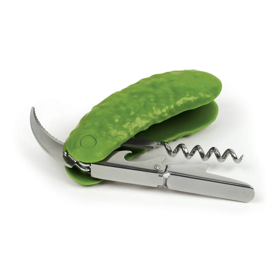 When it’s time to relish a dillightful bottle of wine, reach for Fred’s Pickled corkscrew and everything will be just brine. This quality, multi-functional bar tool includes a foil cutter and double-hinged lever corkscrew. Packed on a peggable backer card.