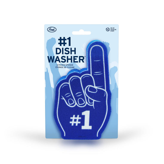 Let’s face it, no one is a super fan of cleaning. But when it comes to doing the dishes you’re #1! Fred’s #1 Dishwasher foam finger kitchen sponge has three hardworking layers to lock in suds & give you a winning clean! Packed on a peggable backer card.