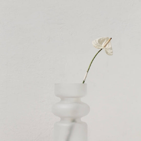 Our very first collection of glass vases is a classic take on symmetrical forms. This frosted glass can embrace your home decor with a unique artistic expression. From exotic florals to dry twigs from the backyard, Iris's frosted glass vase can hold it all. The translucent finish of this vase adds a peculiar play of reflection to the objects inside the vase.