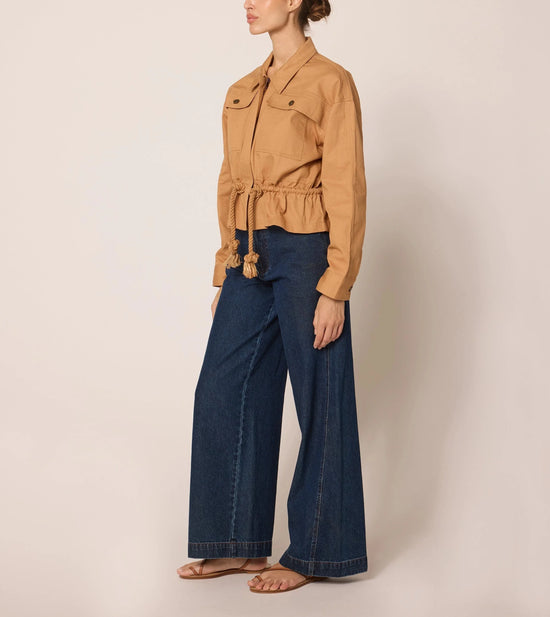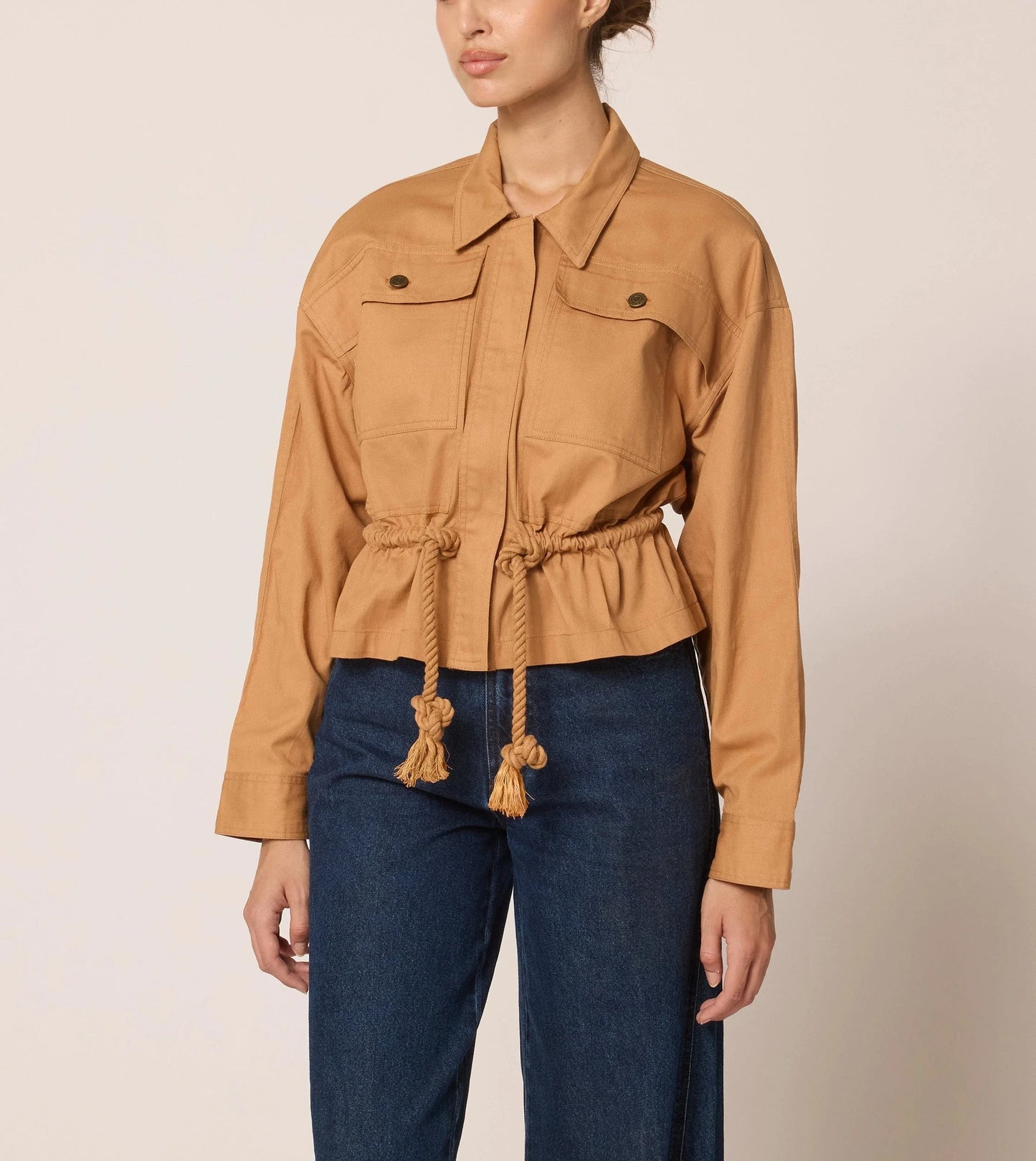 The Jasper Jacket is made from cotton twill and is the perfect jacket made to last. It features a unique rope drawstring detail at the waist with two functional pockets at the front. Style with our core collection for an effortlessly chic look.