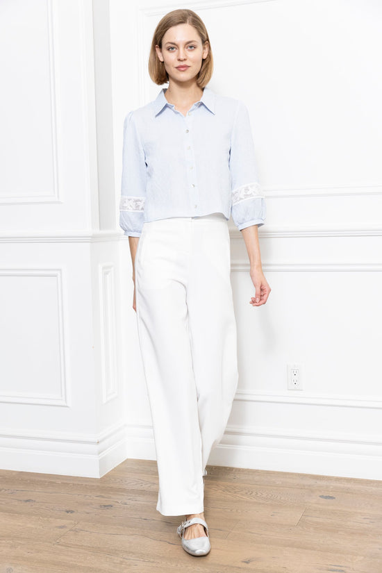A fresh take on a classic button-down, this lace detail shirt from Zero Degrees Celsius is the definition of effortless cool. The crisp tailoring is softened with delicate lace paneling, adding just the right amount of femininity. Wear it half-tucked with denim for a relaxed vibe or layered under a blazer for an elevated look—either way, it’s a closet staple with a little something extra.