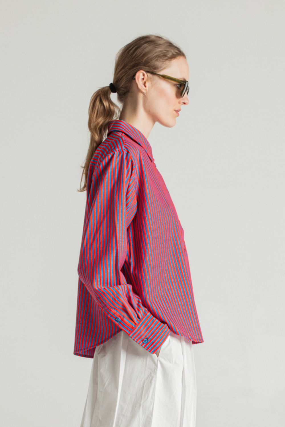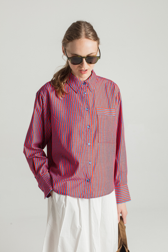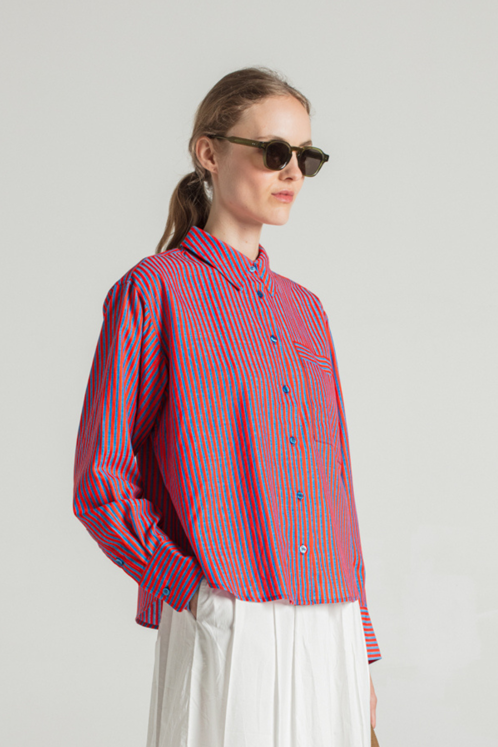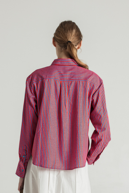 The Catika Striped Shirt from Le Mont St Michel is a refined take on a timeless staple. Woven in France and carefully crafted in Portugal, this lightweight shirt features a classic cut with a perfectly balanced stripe pattern. A flat pleat sewn into the back yoke adds subtle structure, giving it an effortless sophistication. Whether worn loose or tucked in, it’s a versatile piece that works year-round. We love Le Mont St Michel for their dedication to quality craftsmanship and that signature French cool. Take your usual size for the perfect fit. 68% VI, 32% CO.