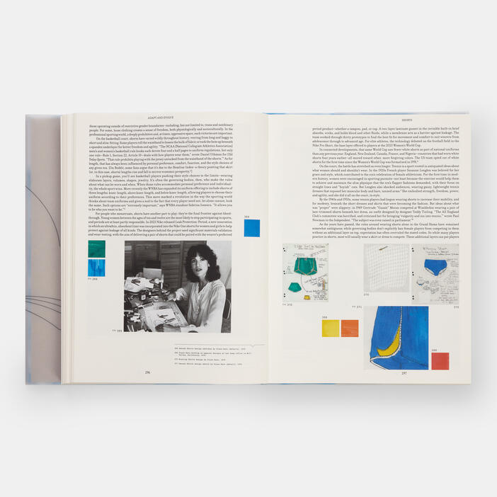 Look Good, Feel Good, Play Good visualizes the relationship between women and the garments they wear through five design archetypes from sporting history: warm-ups, jerseys, leggings, sport bras, and shorts. Steeped in narrative, history, and Nike’s abundant archive, the book’s rich imagery spans reproductions of Nike’s trade catalogues that date back to the early 1980s, period and contemporary photography, sketches, advertisements, fabric swatches, seasonal color palettes, original design proposals and patents, logos, product and campaign shots, and everything in between.