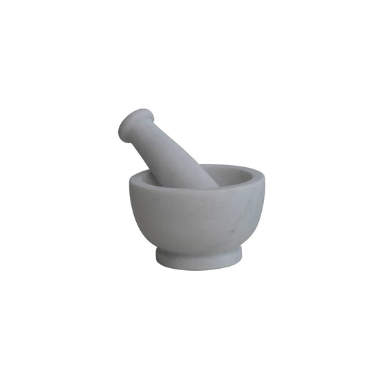 Our thoughtfully curated collection of kitchen tools showcases an expansive selection of natural materials and artisanal silhouettes that are all thoughtfully designed for the modern host or home chef. Elevate weekday dinners or special occasions with an offering of stylishly versatile pieces including rolling pins, salt and pepper shakers, pepper mills, juicers, dish brushes, mortar and pestles, and so much more. Choose from a wide array of materials from marble and wood to stoneware and bamboo, and styles from modern farmhouse and boho to mid-century modern and minimalist. Curate a dazzlingly elegant display for a dinner party, or simply add a touch of style to daily rituals with a piece that is sure to impress. This modern mortar and pestle set showcases sleek, solid marble construction in a classic silhouette. This piece is food safe. Not dishwasher safe. Made from marble.