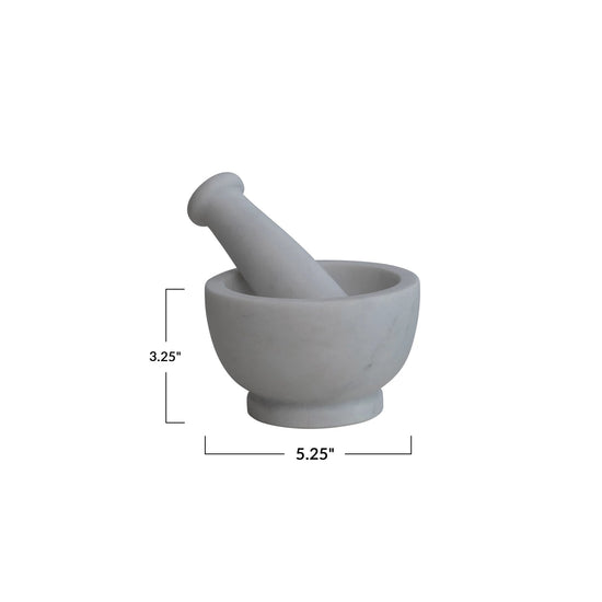 5-1/4" Round x 3-1/4"H Marble Mortar & Pestle, White, Set of 2