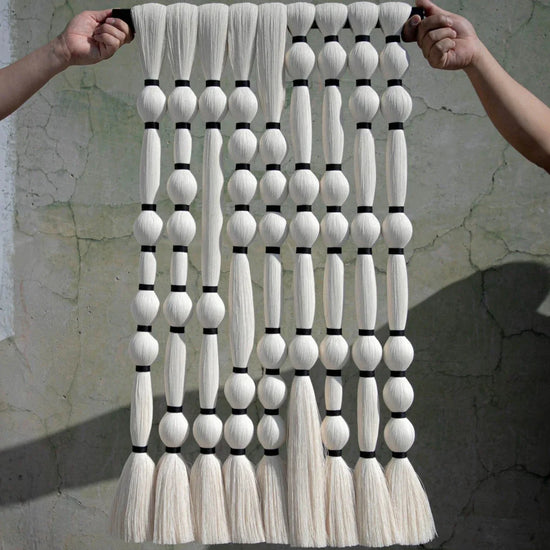 Wall hanging handmade by artisans from 100% raw cotton thread. Mitla Mini is part of the Caralarga Mini collection. The Caralarga pieces now in miniature version, a more practical format that will become the ideal decorative element for your home.