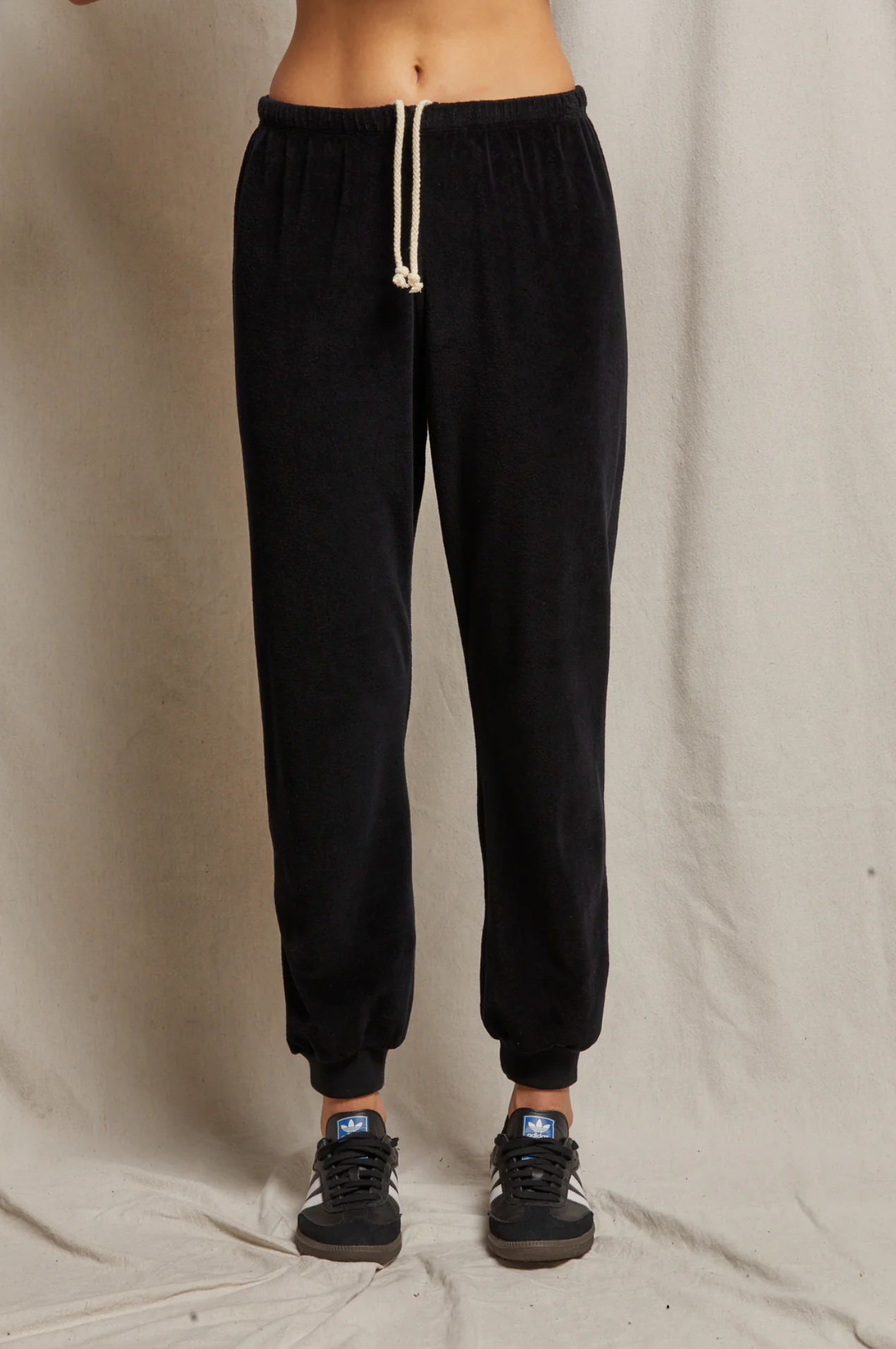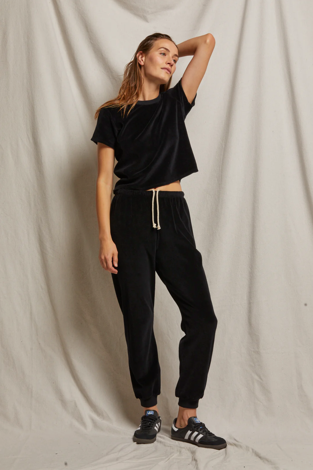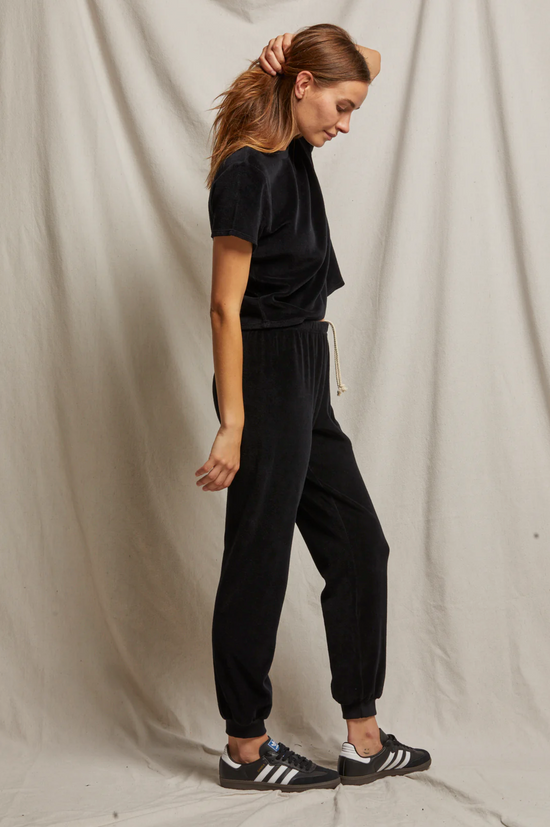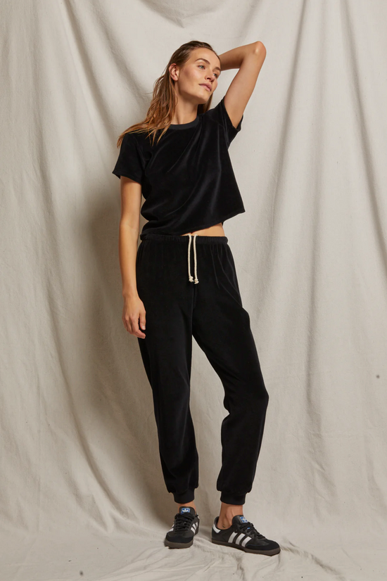 Bring ease to your daily routine with The Bailey jogger, crafted from plush, luxe 100% cotton velour that’s perfect for the new season. Designed with a relaxed, straight leg and a tapered bottom, these mid-waist joggers offer a full-length fit that’s true to size. Featuring a natural braided draw cord with a hidden waistband, they’re the perfect blend of comfort and elevated style.