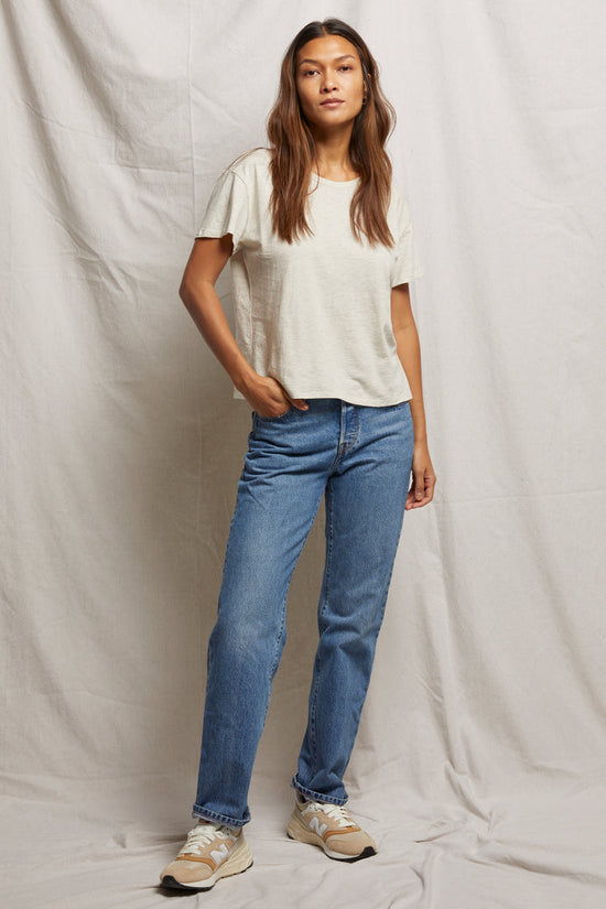 Designed to pair effortlessly with mid-rise denim, this tee drapes beautifully for a look that feels both easy and polished. Available in handpicked shades to suit any style—trust us, you’ll want more than one.