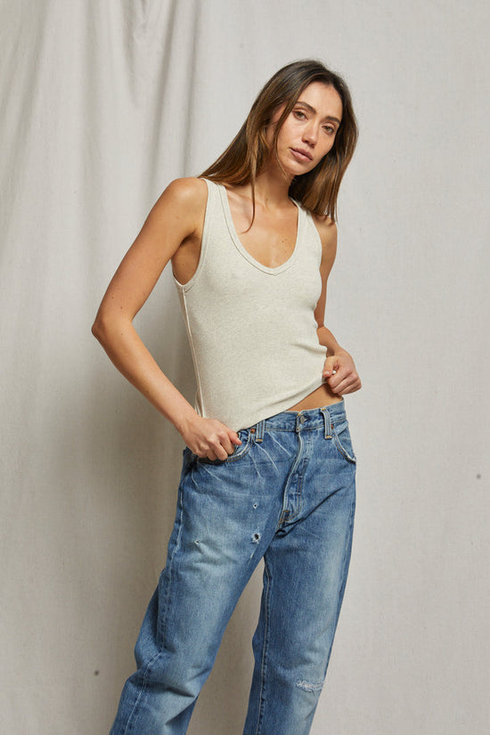 A familiar favorite with a fresh twist, the Maria Ribbed Tank takes PerfectWhiteTee’s bestselling Blondie body and reimagines it with a flattering V-neckline. Made to be effortlessly versatile, this tank is the perfect base layer or standalone staple, pairing seamlessly with classic denim or one of our relaxed French terry bottoms. With its soft, stretchy ribbed fabric, it’s designed to keep up with your weekly wardrobe rotation.