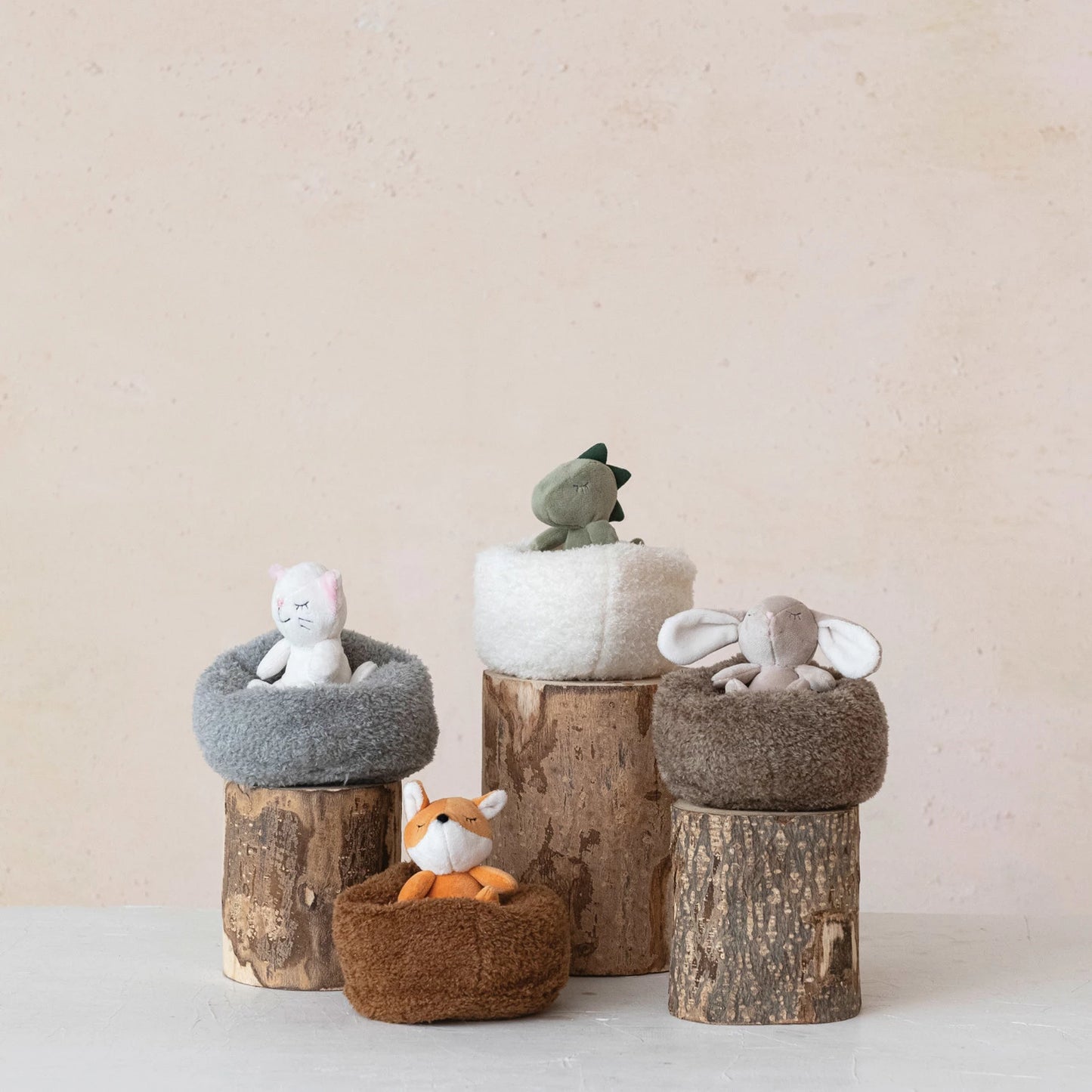 6" Round x 5"H Plush Animal w/ Mini Bean Bag, Multi Color, Set of 2, 4 Styles