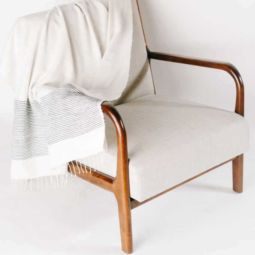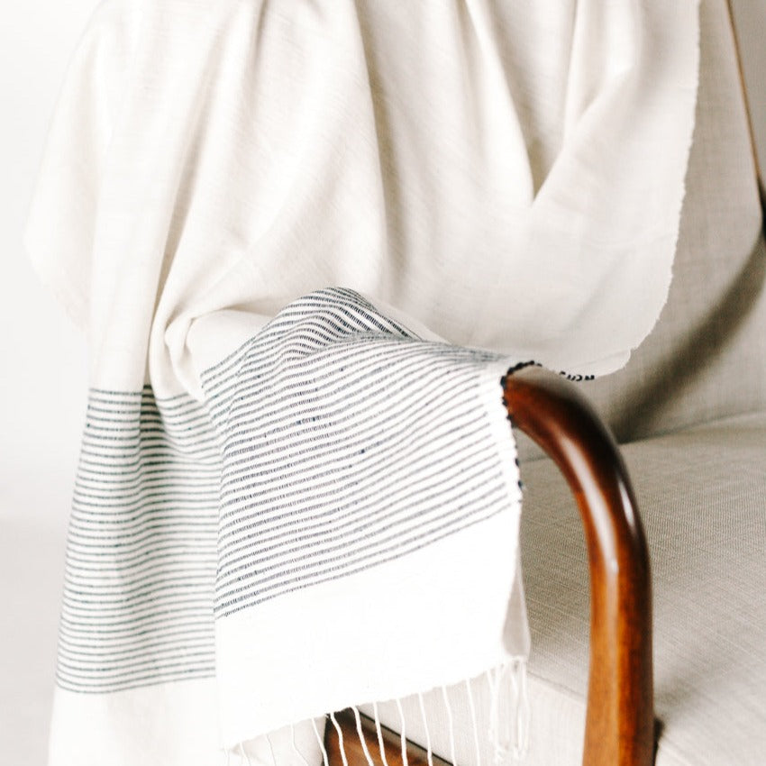Classic, timeless, versatile. The Riviera throw features natural hand-spun cotton accented with blocks of subtle ribbed accents. This hand-woven throw is guaranteed to be one of the most useful pieces in your home. Its size, softness and light weight make it the perfect cozy wrap and the ultimate travel companion.Hand-spun Ethiopian cotton adds a uniquely rich texture that will continue to soften and become more absorbent with each wash&dry. Yes, it's machine washable!