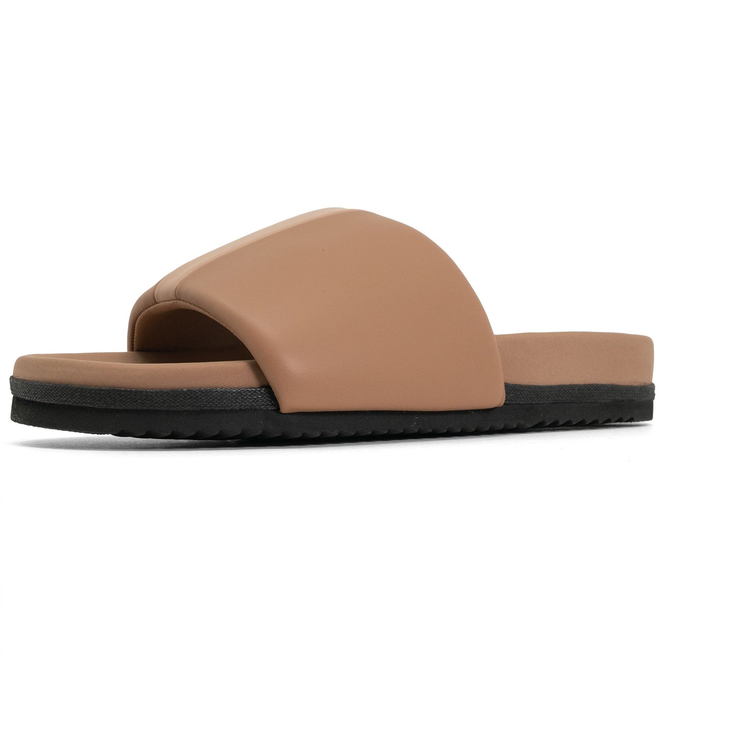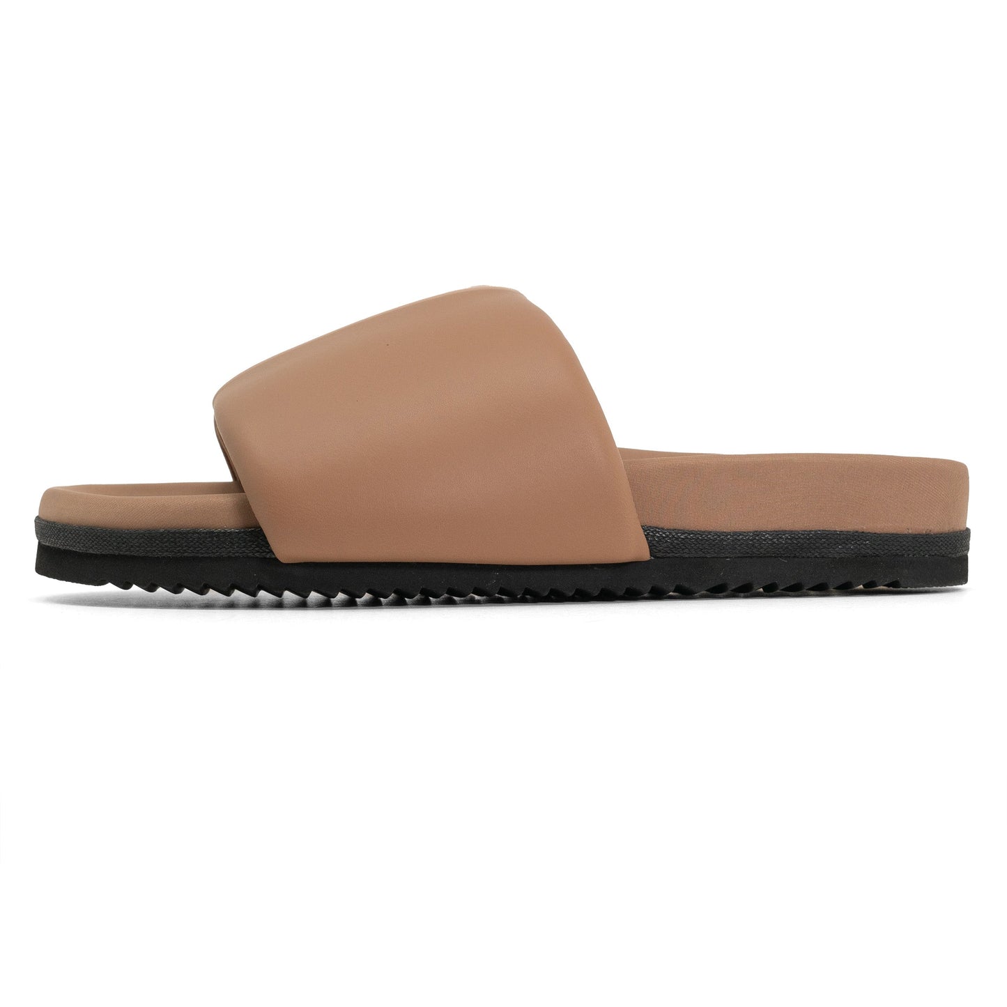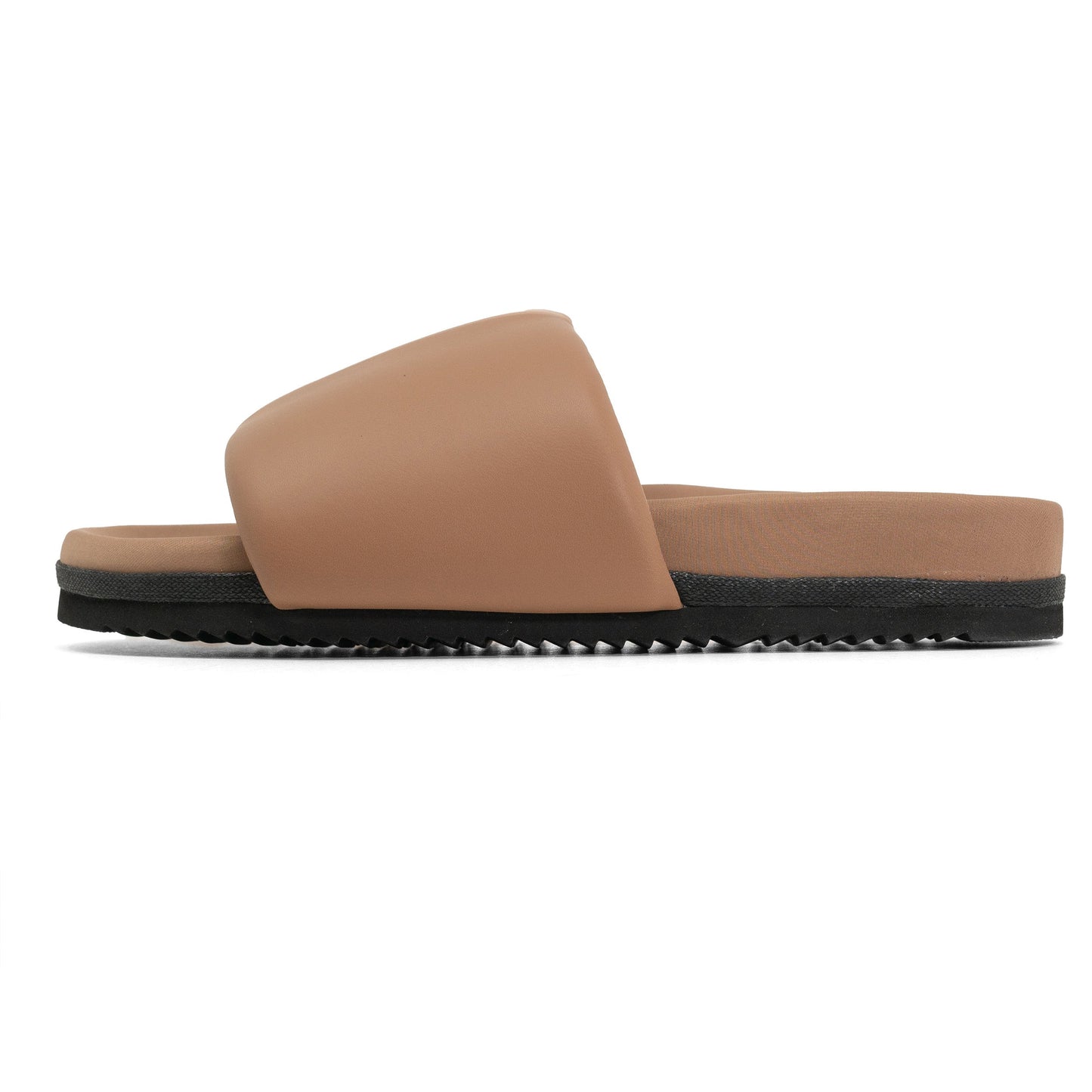 ROAM’s slip-on ‘Stripe Slider’ footbed sandals have a center stripe in a complimentary color for an elevated sports luxe feel. Crafted in ultra soft vegan leather, memory foam is inserted by hand into the upper, creating a pillow effect that gently supports the foot.