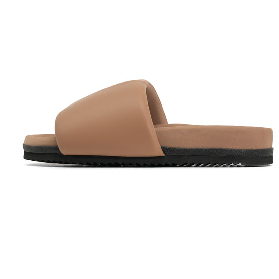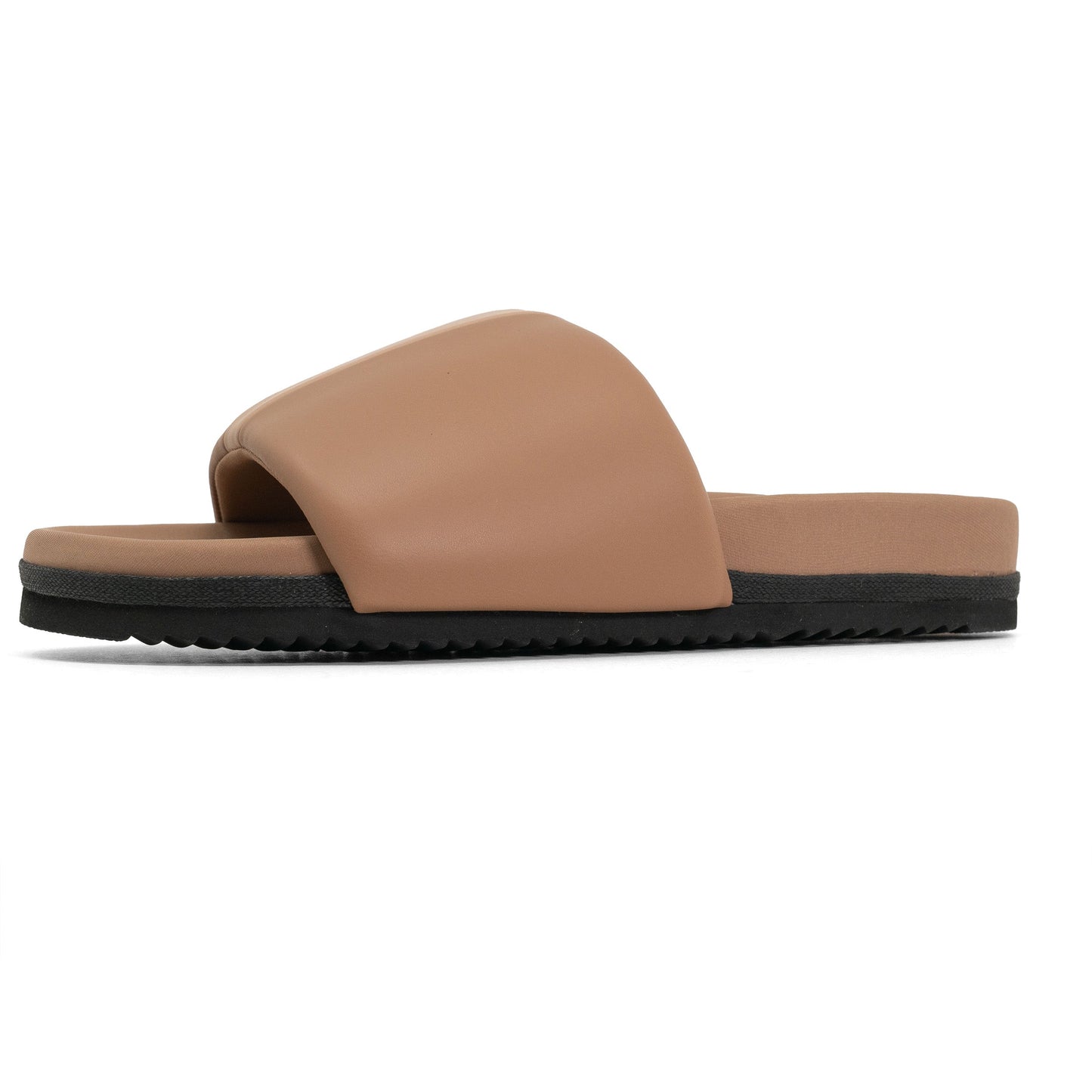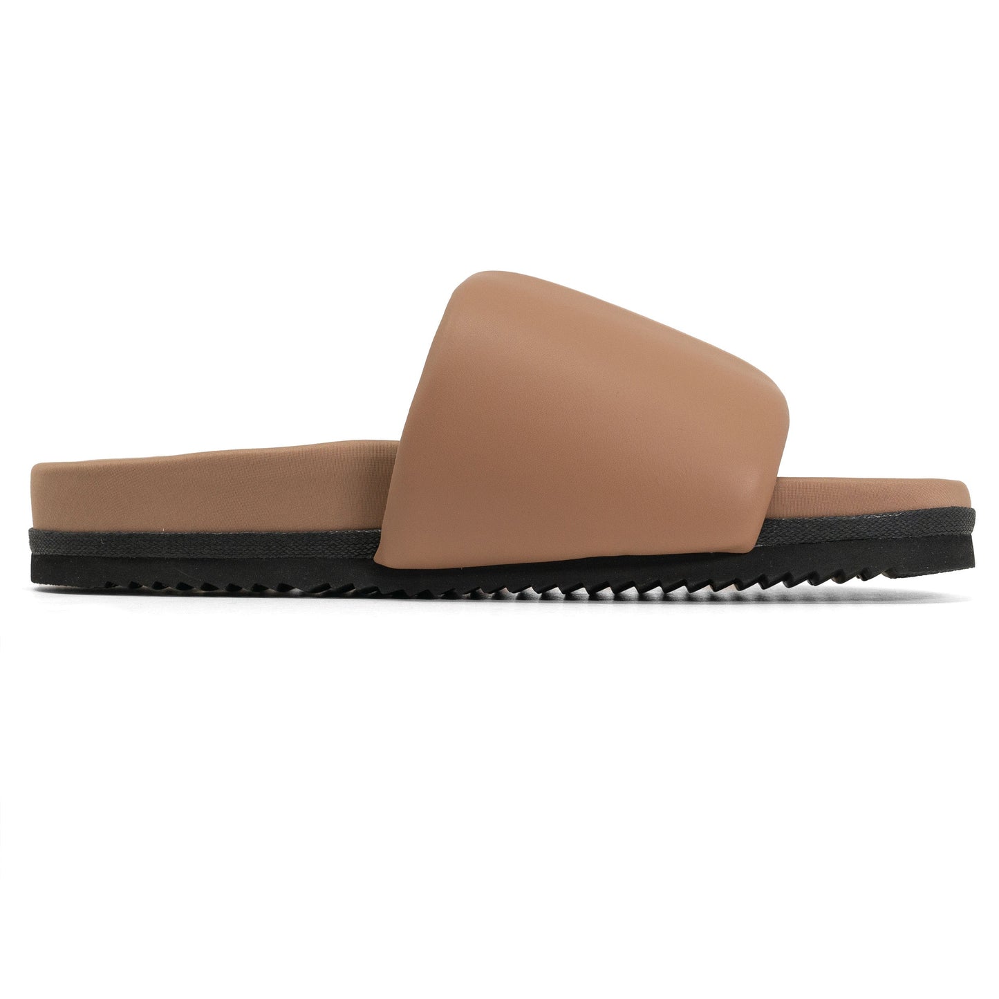 ROAM’s slip-on ‘Stripe Slider’ footbed sandals have a center stripe in a complimentary color for an elevated sports luxe feel. Crafted in ultra soft vegan leather, memory foam is inserted by hand into the upper, creating a pillow effect that gently supports the foot.