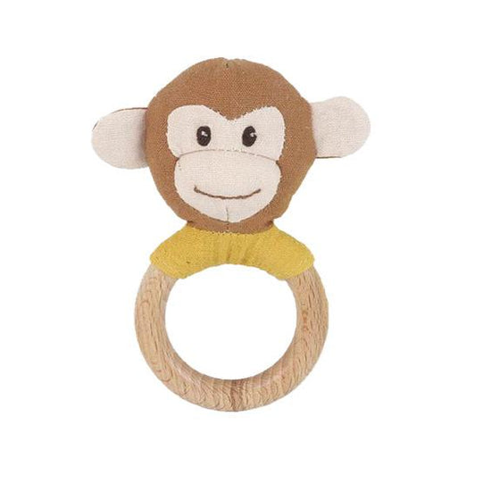 We got you moms and dads: help for teething is here. We've made this rite of passage as fun as possible with our Bunny Wooden Teething Baby Rattle. Meticulously crafted of a non-toxic wood devoid of harmful chemicals, this 100% natural wooden teether is incredibly safe for your developing child. Adding an extra element of surprise, it also doubles as a linen baby rattle. A sweet bunny face at the top of this wooden baby rattle charms a child and makes a soothing sound when shaken.