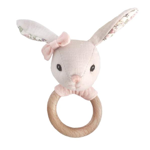 We got you moms and dads: help for teething is here. We've made this rite of passage as fun as possible with our Wooden Teething Baby Rattle. Meticulously crafted of a non-toxic wood devoid of harmful chemicals, this 100% natural wooden teether is incredibly safe for your developing child. Adding an extra element of surprise, it also doubles as a linen baby rattle. A sweet bunny face at the top of this wooden baby rattle charms a child and makes a soothing sound when shaken.