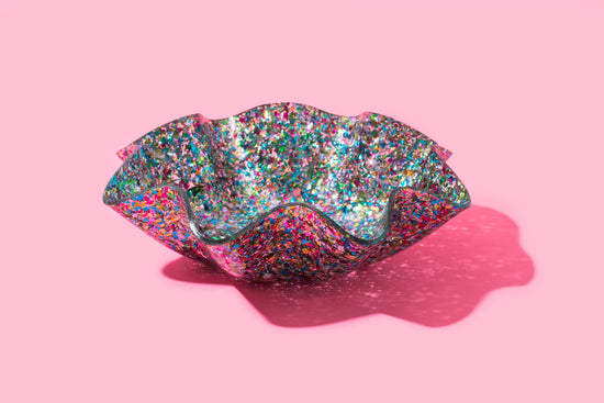Details * Size: 5" diameter, 3" tall * Made with our signature colorful confetti * Material is acrylic *